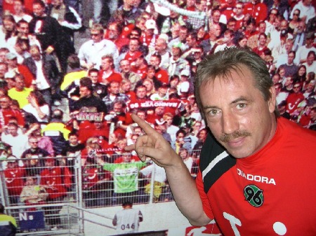 Fran hat sich auf dem Riesenposter der Nordkurve in der AWD-Arena entdeckt.