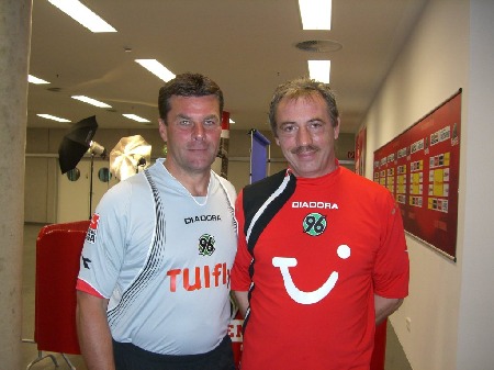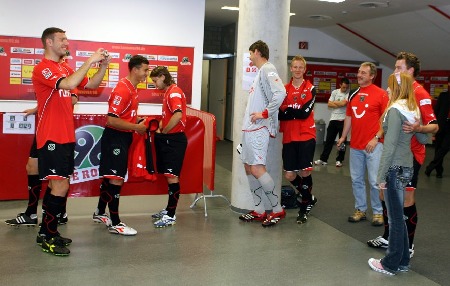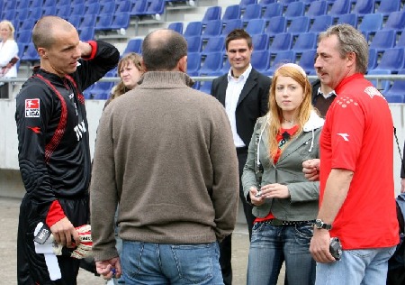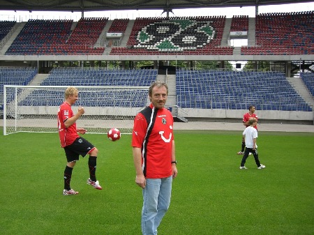Frank mit Mike Hanke und Steven Cherundolo beim Training auf dem "heiligen Rasen" der AWD-Arena anlässlich des offiziellen Fototermins der Roten.